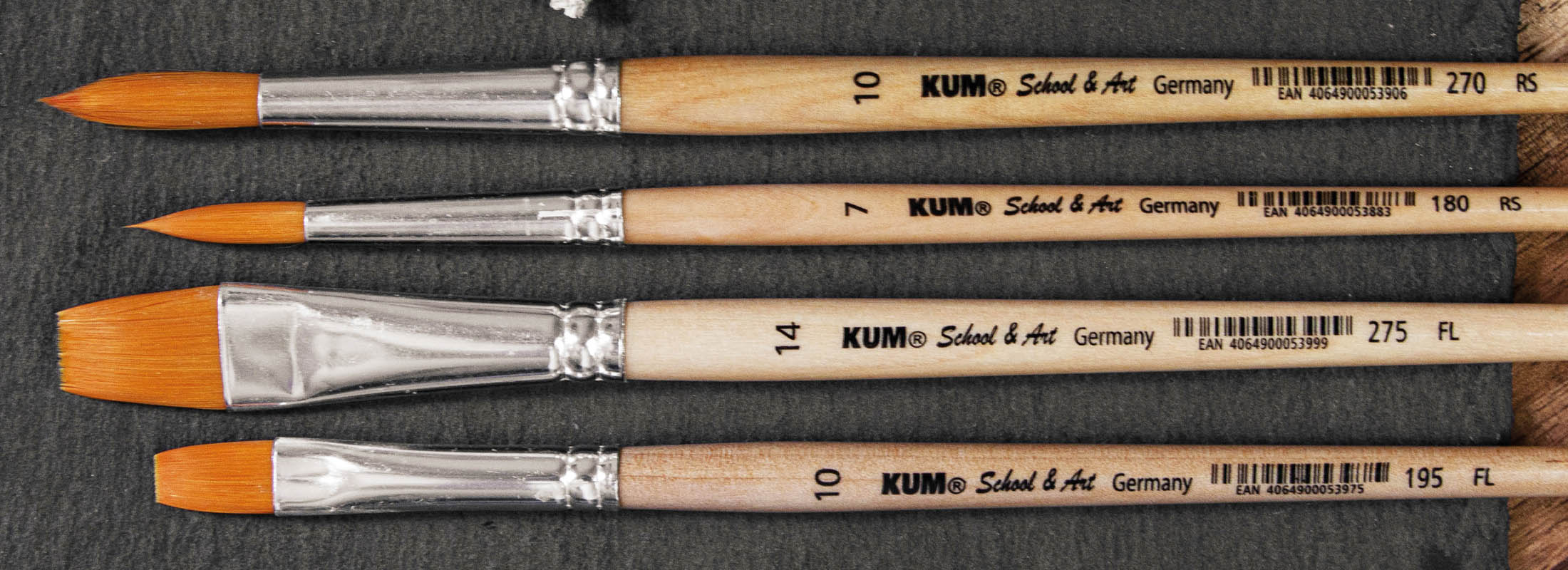Encara que en els seus inicis KUM només fabricava maquinetes, amb el pas dels anys s’han anat afegint moltes altres categories d’articles de papereria, art i cosmètica. Actualment l’assortiment de KUM inclou productes d’alta qualitat amb pinzells excepcionals per a artistes.